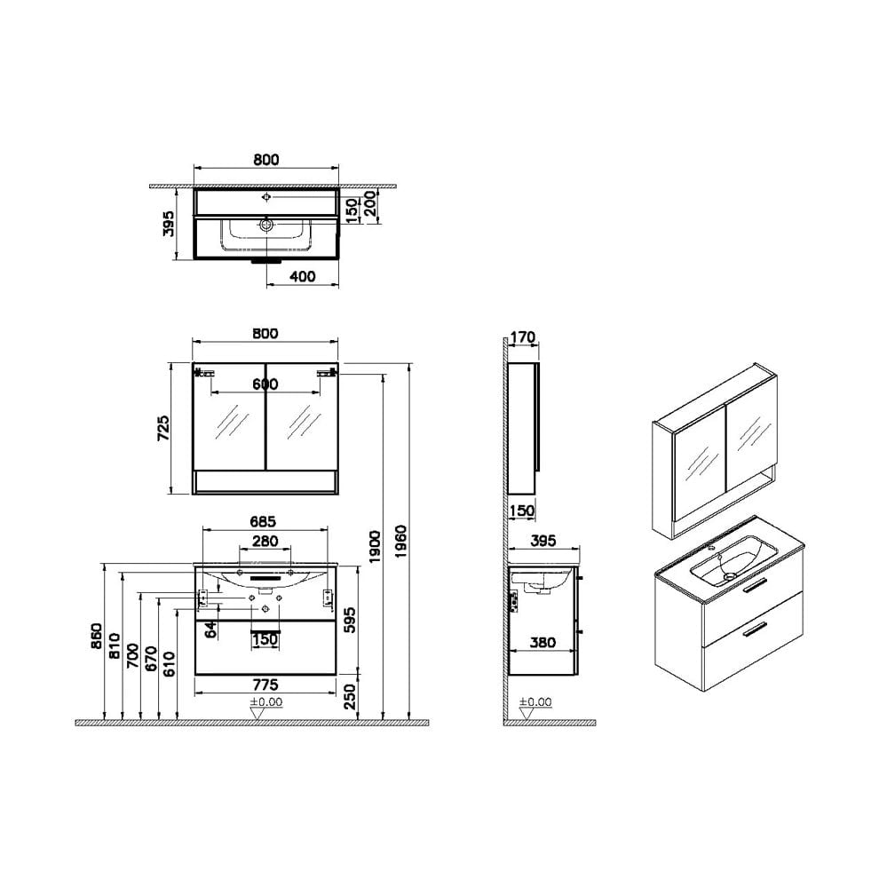 Spoguļskapis VitrA Mia 80x72x17cm, antracīts BEZ APGAISMOJUMA