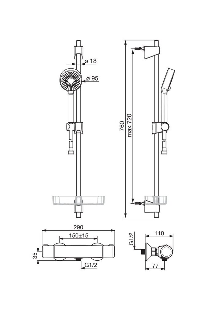 ORAS NOVA dušas maisītājs ar termostatu un dušas statīvu, hroms