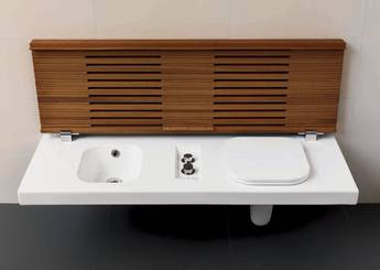 HATRIA G-FULL Pods labās puses WC+bidē komplekts ar baltu SC vāku 120x50cm, piekarināms pie sienas, balts ar koka vāku