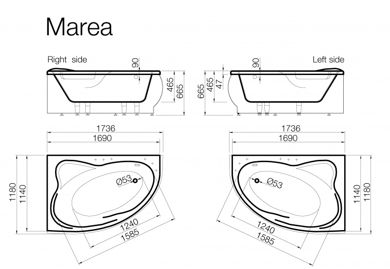 Marea ir garakā un dziļākā no visām stūru vannām., kas rada īpaši patīkamu mazgāšanās komfortu.