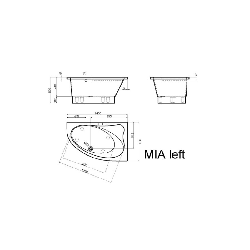 Vanna MIA 140x90cm labā balta+sifons
