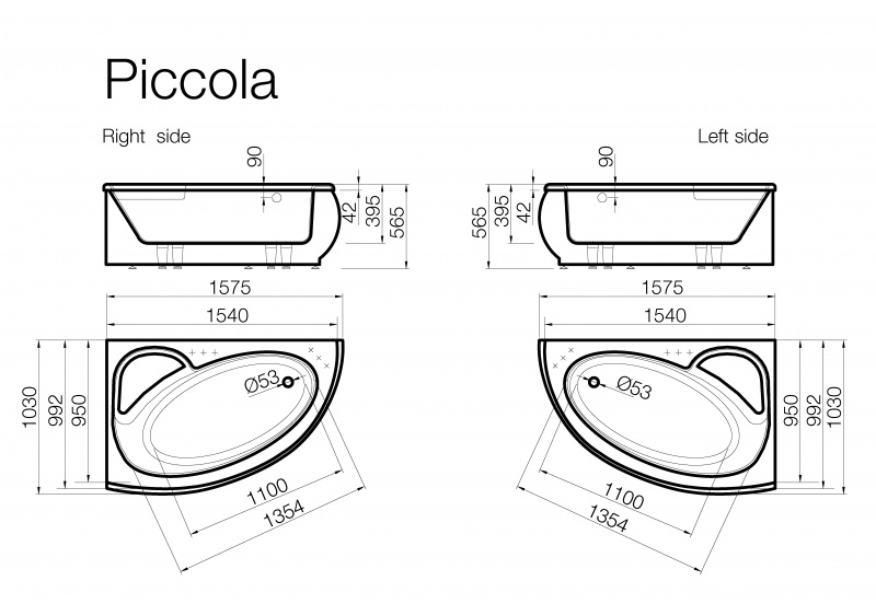 Atšķirībā no līdzīgiem modeļiem, Piccola ir šaurāka un zemāka stūra vanna, tapēc vairāk piemērota nelielām vannas istabām. Mazākam dzīvkolim vai mājai, tā piešķirs patīkamu maiguma sajūtu.