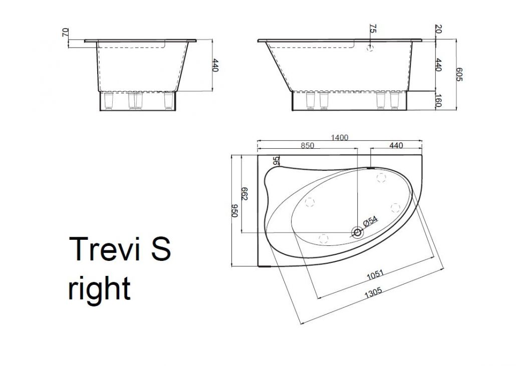 Vanna TREVI 1400x950mm, labā, balta ar sifonu
