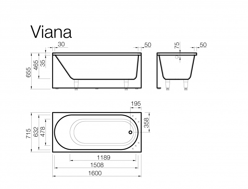 Vanna VIANA 1600*710 krāsaina ar paneli+sifons AKCIJA!!