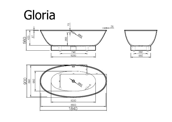VISPOOL brīvstāvošās vannas GLORIA 1840*900 (balta)