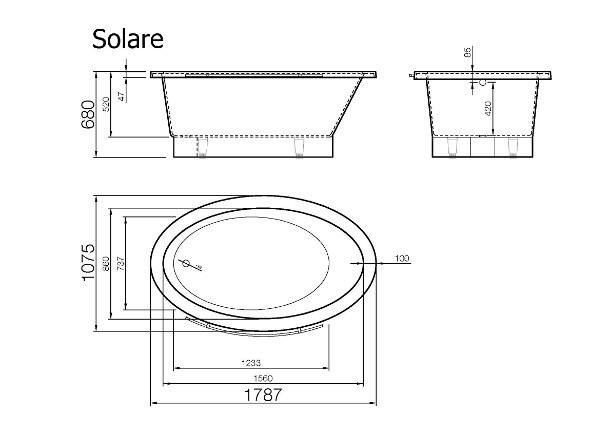 VISPOOL brīvstāvošās vannas SOLARE 1787*1075 (balta)