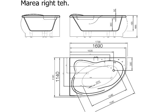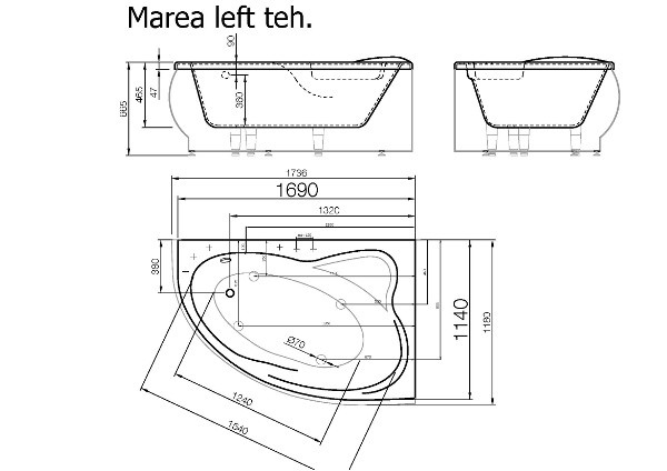 Marea ir garakā un dziļākā no visām stūru vannām., kas rada īpaši patīkamu mazgāšanās komfortu.
