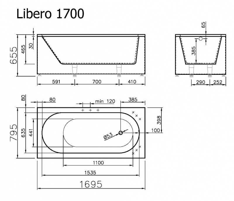 VISPOOL taisnstūra vannas LIBERO 170 1690*795 (balta)