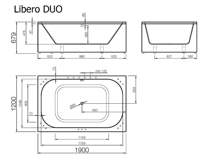 VISPOOL taisnstūra vannas LIBERO DUO 1900*1200 (balta)