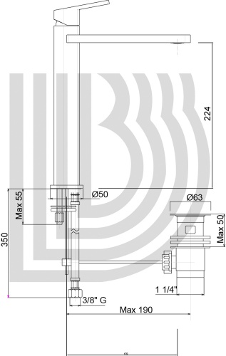 BIANCHI izlietnes maisītājs CITY pagarināts ar vārstu 1 1/4`, hromēts
