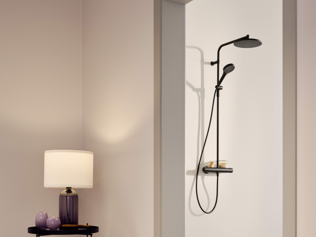 Dušas sistēma ORAS STYLE ar termostata maisītāju, lietus dušu un rokas dušu, melns matēts