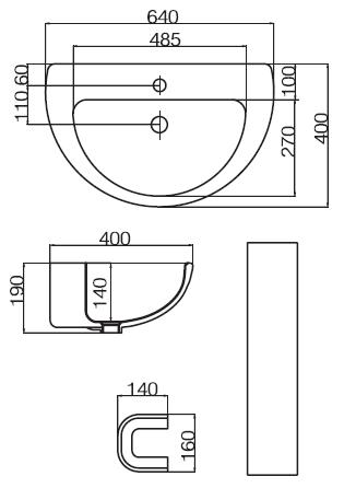 Izlietne FLY 64x40cm 40014 balta bez kājas Althea Ceramica
