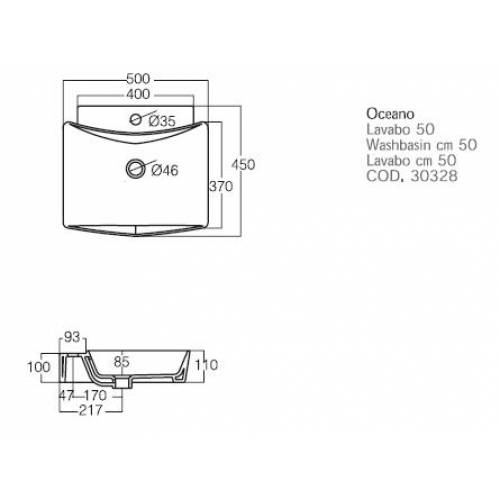 Izlietne OCEANO 50x45cm liekama uz virsmas vai stiprināma pie sienas Althea Ceramica