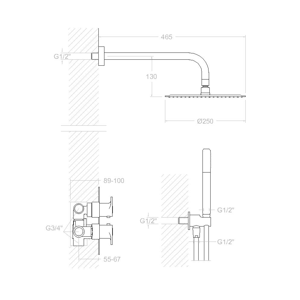 Maisītājs Dušas ALEXIA ar termostatu, iebūvējams sienā, lietus duša D250 un rokas duša RamonSoler brushed nickel