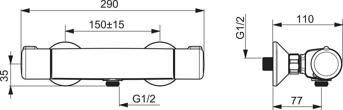 ORAS NOVA dušas termostats, melns matēts