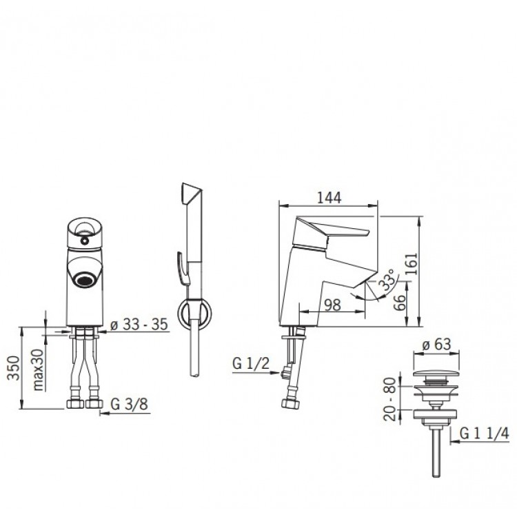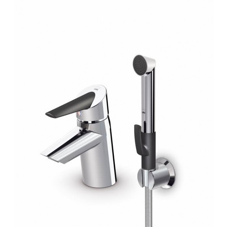 ORAS OPTIMA izlietnes ar bidettu un melnu rokturi, hroms