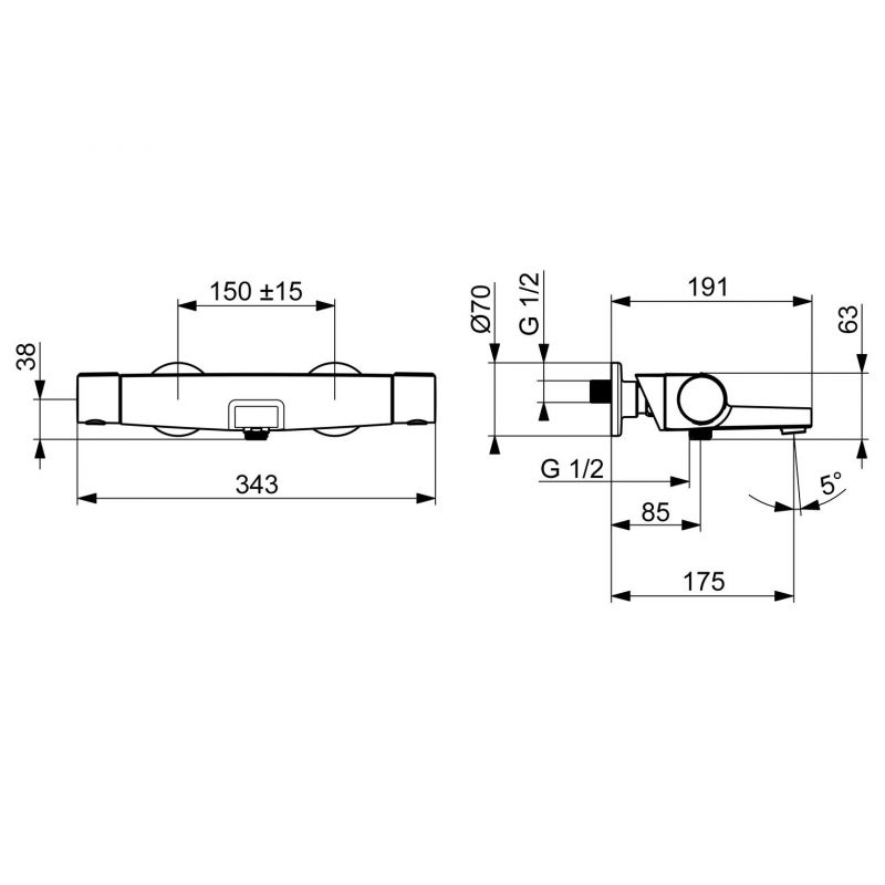 ORAS OPTIMA STYLE vannas maisītājs no sienas ar termostatu un pārslēdzēju, hroms