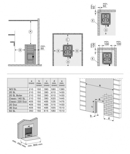 *Minimālie attālumi no uzliesmojošām sienām: sānos: 30 cm, aizmugurē: 25 cm, priekšpusē: 100 cm.
