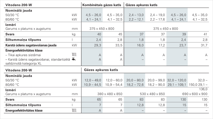Vitodens 200-W ir pie sienas stiprināms gāzes kondensācijas katls, kas ir ideāli piemērots gan dzīvoklim, gan arī vienas vai daudzģimeņu mājai. To vienkārši var uzstādīt nišā vannas istabā vai iebūvēt virtuves skapī.
