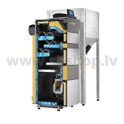 SMART PELLET Standart 16 kW ir centrālās apkures granulas katls ar automātisku kurināmā padevi un kurināmā aizdedzināšanu.