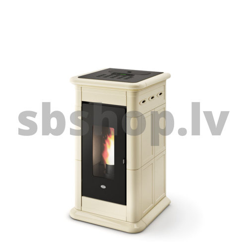 Granulu kamīns Eva Calor HYDRO VENERE 13 kW ar centrālapkuri krēmīgi bēšs akmens apdare