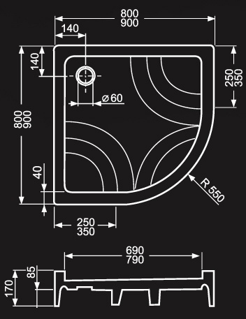Dušas paliktnis HAWAI-P 900*900 pusap.kr.