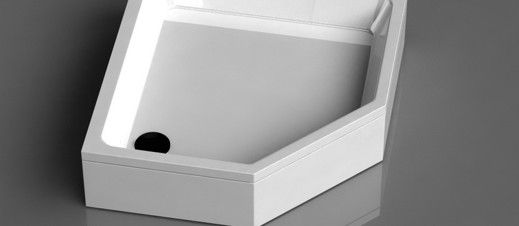Akmens masas paliktnis F-90 90x90x26cm piecstūris, balts ar kājām un paneli