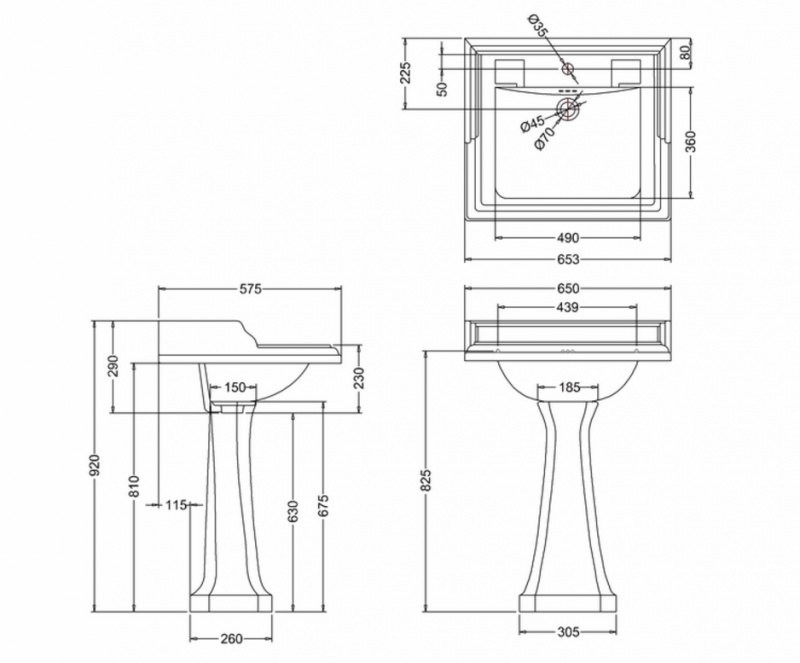 Izlietne Burlington CLASSIC 65cm, balta BEZ kājas
