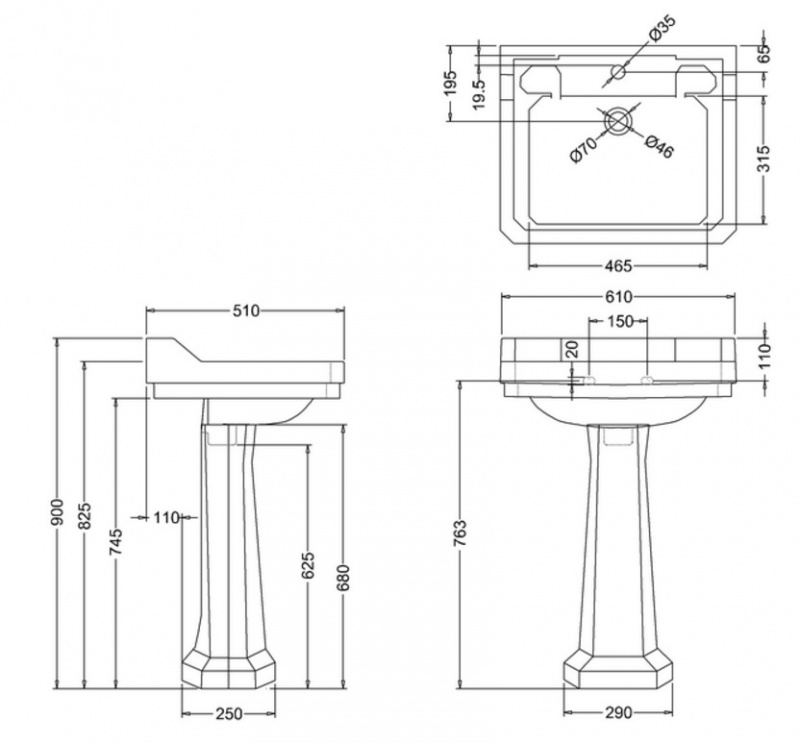Izlietne EDWARDIAN 61cm, balta BEZ kājas