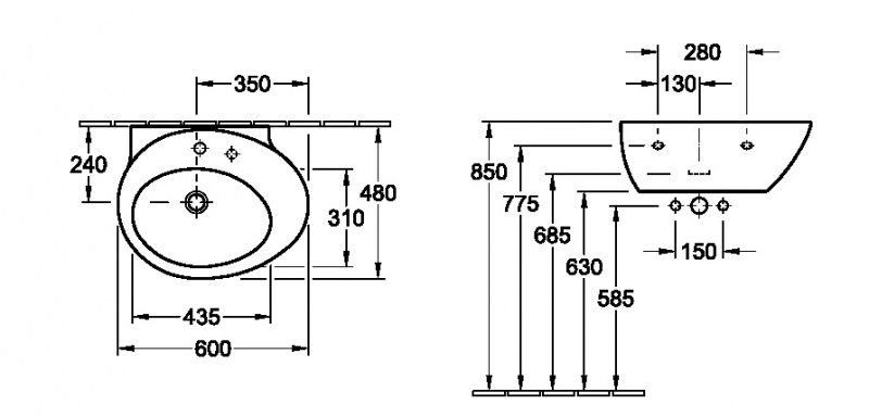Izlietne AVEO 60 cm, balta