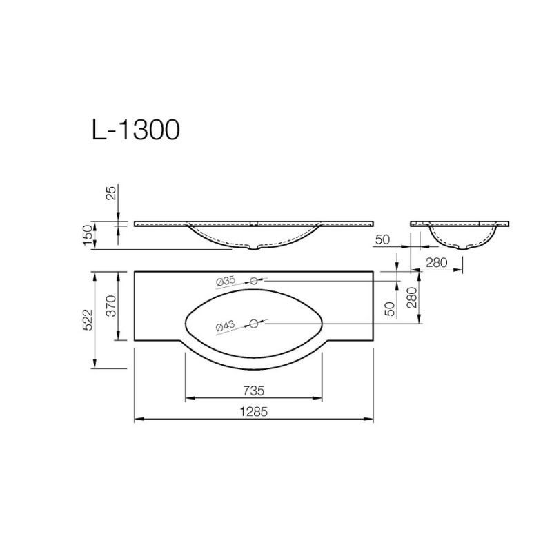 Izlietne L-1300 1295*530 balta