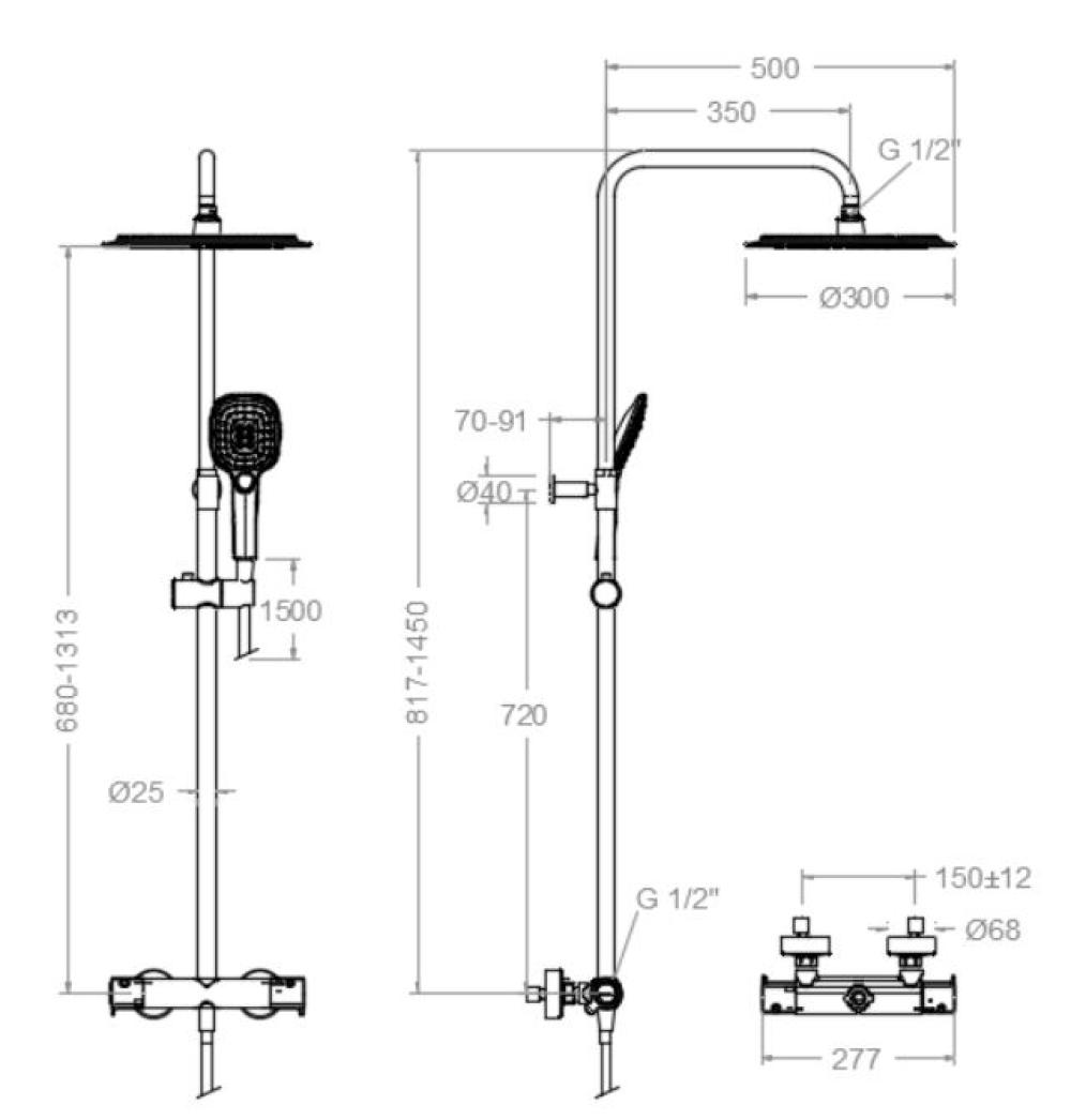 Dušas kolonna ar termostatu, lietus dušu D30cm un rolas dušu, teleskopiska, RamonSoler hroms