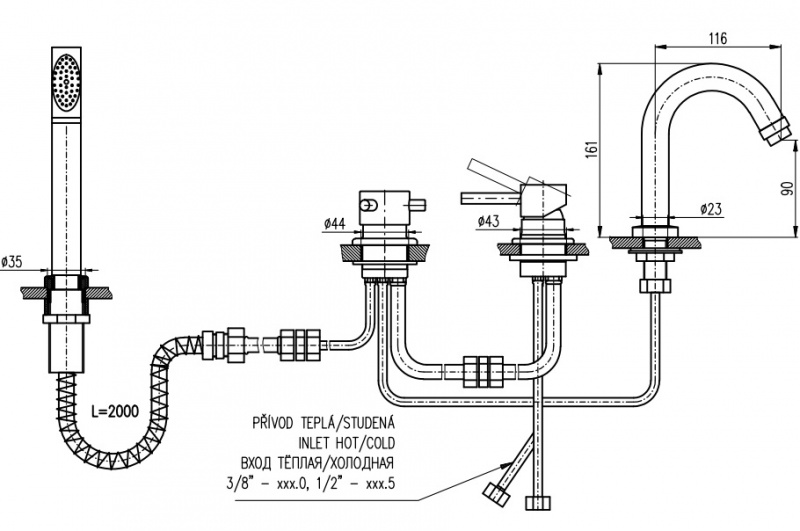 RAV SEINA vannas maisītāji 4-ceļu, keramikas pārslēdzējs, ar izvelkamu dušas šļūteni 2