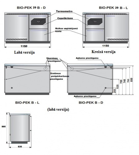 | Plīts izmēri (dziļums x platums x augstums) | 635x1150x885 | mm |