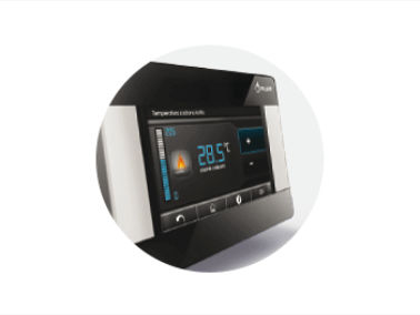 Granulu apkures iekārta ir aprīkota ar vadības automātiku PLUM PLATINUM (divu apkures loku, karstā ūdens tvertnes un akumulācijas tvertnes vadība, skārienjutīgs PLATINUM ekrāns).