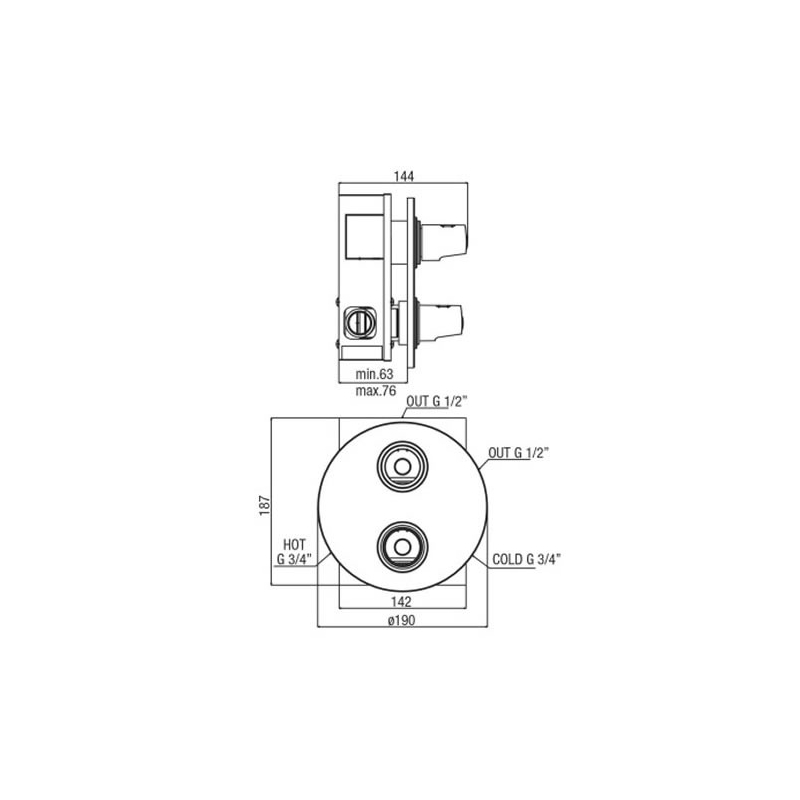 ALPI iebūvējamais dušas maisītājs ar termostatu un pārslēdzēju Sport Plus hroms