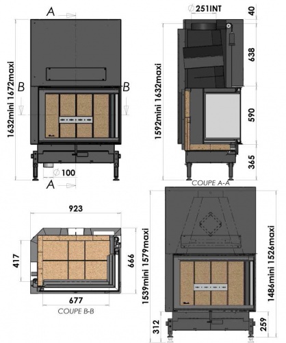 Chazelles Design 1000 VAD kurtuve ar stūra stiklu 13.5kW