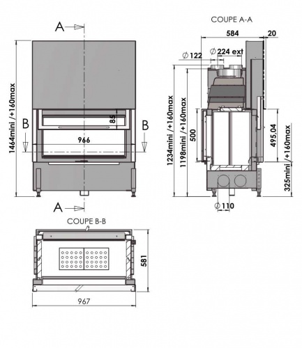 FOYER CLOUD 100 R DF kurtuve ar stiklu no 2 pusēm 12kW