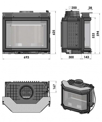 *Minimālie attālumi no uzliesmojošām sienām: sānos: 30 cm, aizmugurē: 25 cm, priekšpusē: 100 cm.