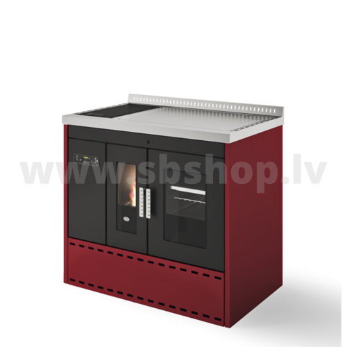 Granulu plīts ar cepeškrāsni Eva Calor ISOTTA 19kW ar centrālapkuri sarkana