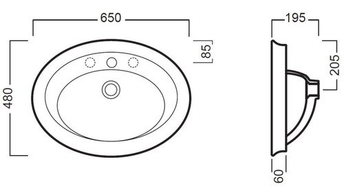 HATRIA DOLCEVITA izlietne virsmā 65x48cm