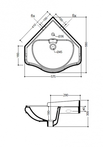 Izlietne RETRO 41 stūra, balta
