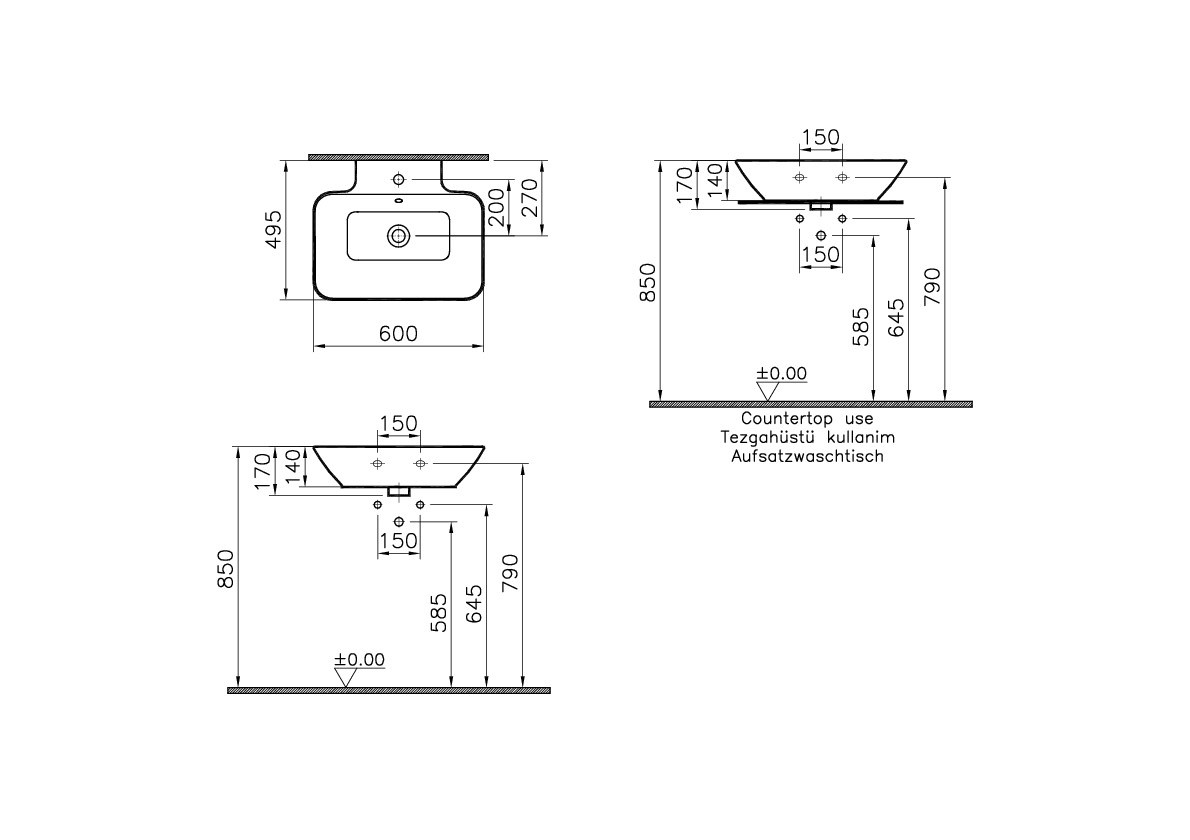 Izlietne VITRA GEO bowl ar vietu maisītajam 60x49cm stiprināma pie sienas