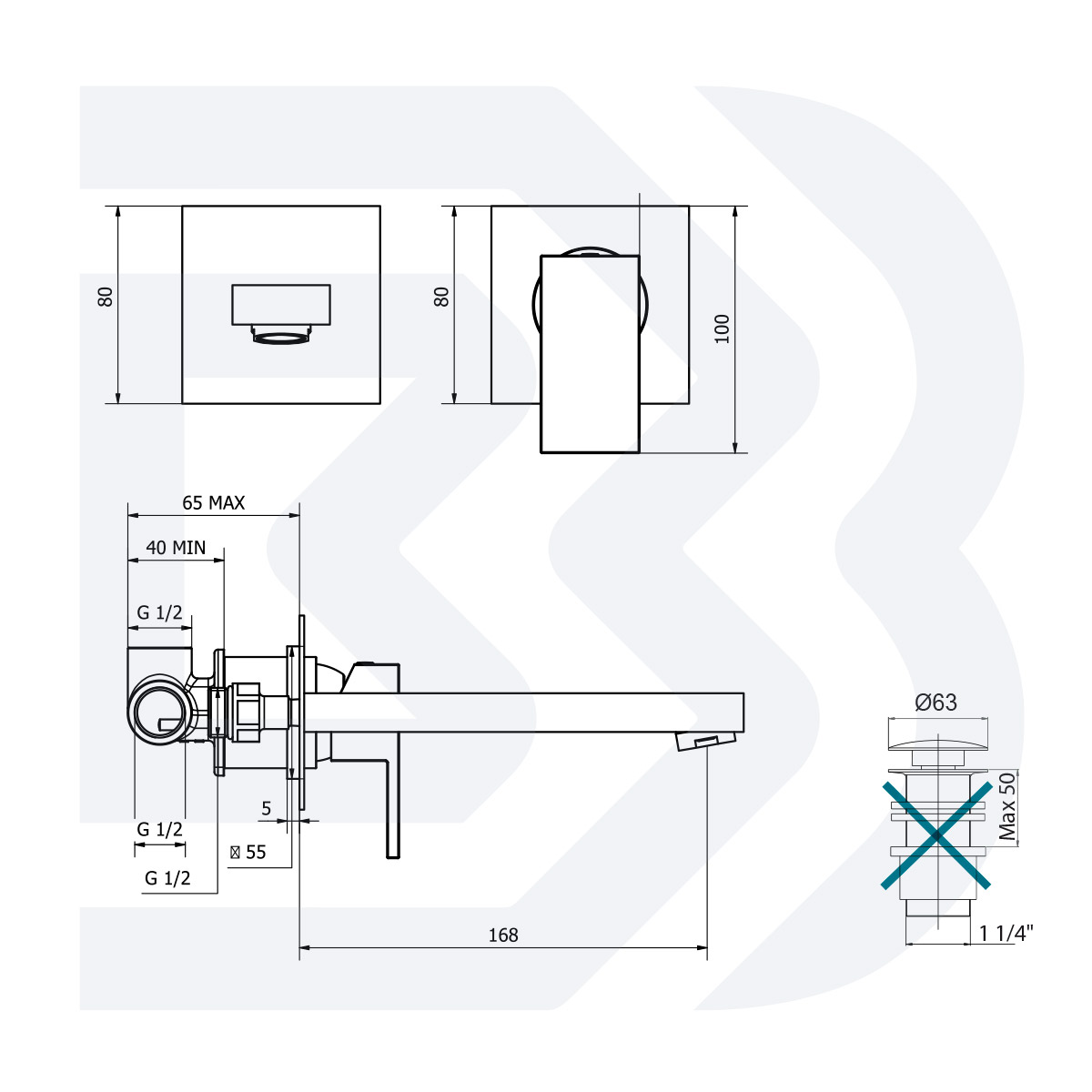 Izlietnes METRO no sienas ar 170mm izteci un iebūvējamo daļu, hroms AKCIJA BIANCHI