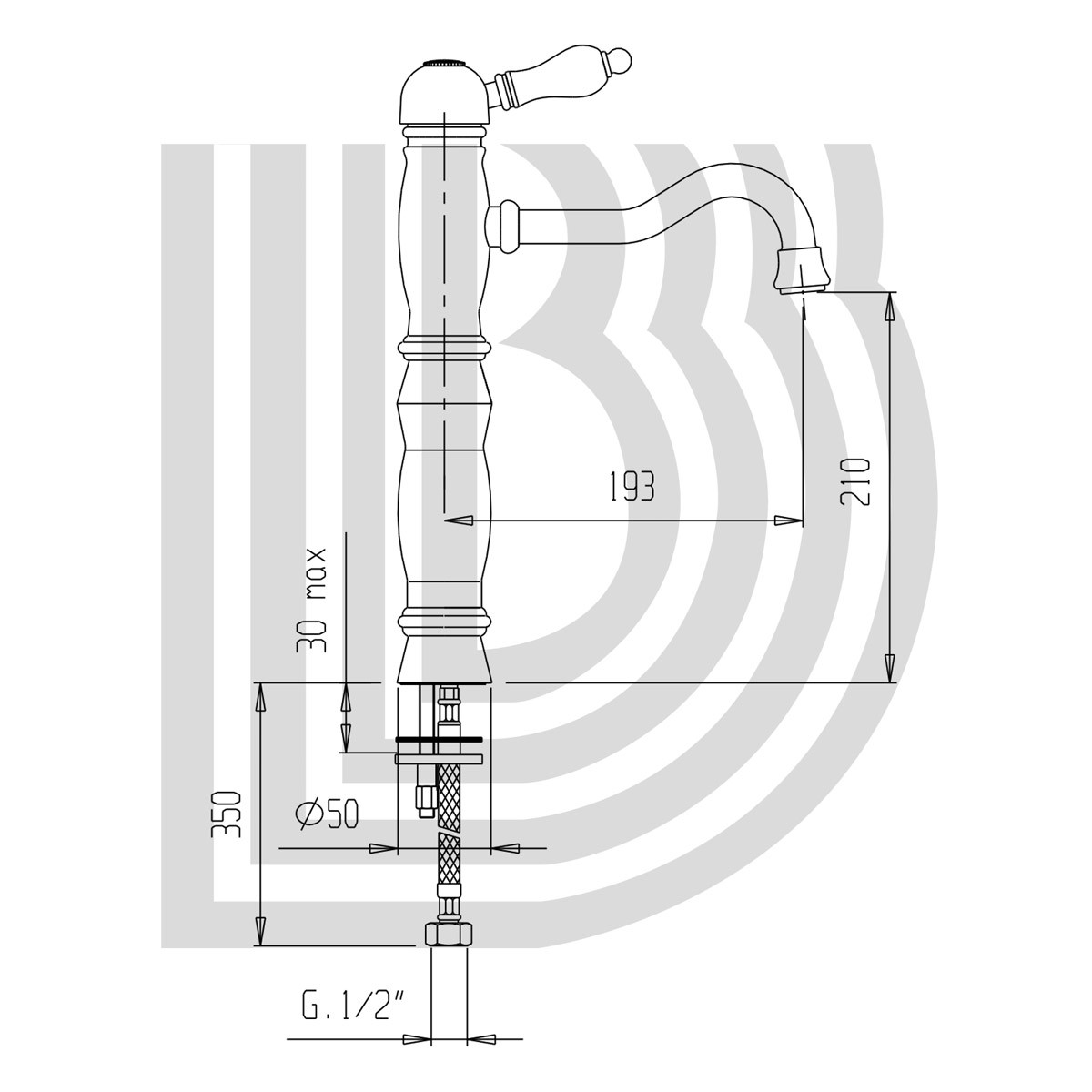 Maisītājs Izlietnes EUROPA augstais ar baltu rokturi un noplūdi hroms BIANCHI