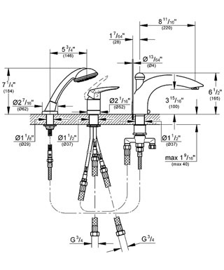 GROHE vannas maisītaji EURODISK trīscaurumu