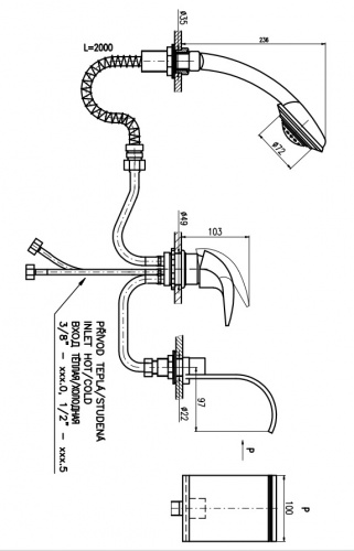 RAV DUNAJ vannas maisītāji 3-ceļu, pārslēdzējs, ar izvelkamu dušas šļūteni 2m