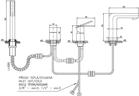 RAV LOIRA vannas maisītāji 4-ceļu ar izvelkamu dušas šļūteni 2m