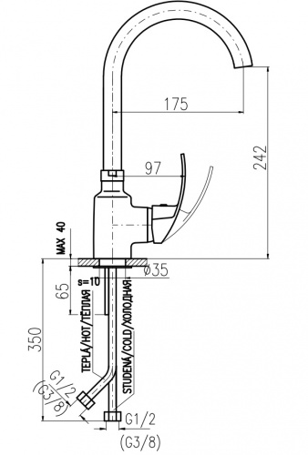 RAV MISISIPI virtuves maisītāji grozāms, augstais, hromēts