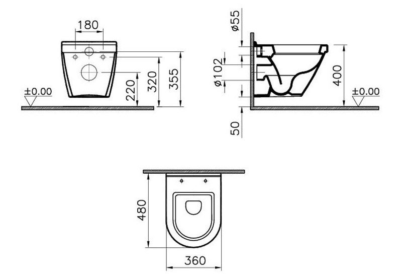 WC pods VITRA S50 Compact 48cm, piekarams bez vāka